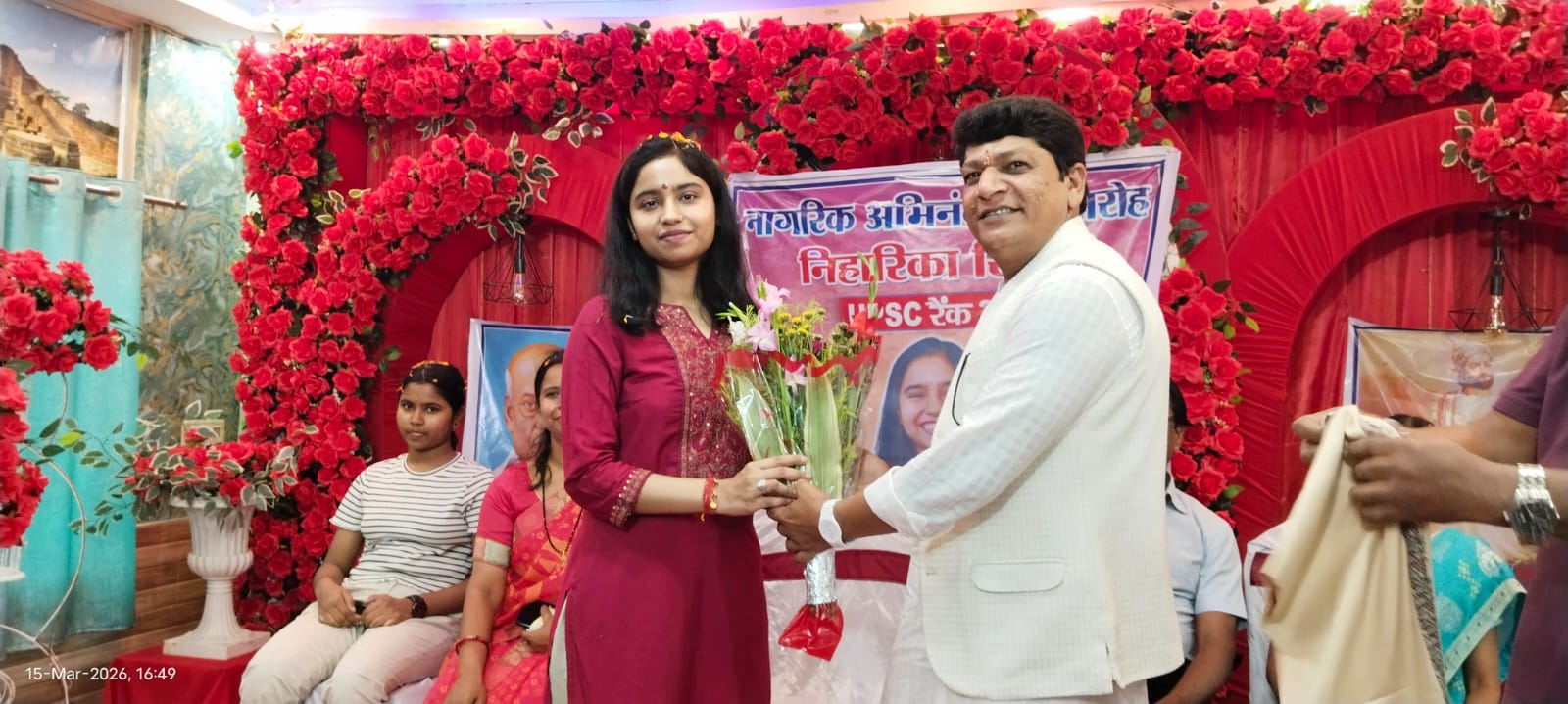 साहिबगंज: जिला परिषद स्थित उत्सव बैंक्वेट हॉल में रविवार को शहर की होनहार बेटी यूपीएससी परीक्षा में 365 रैंक लाकर सफल होने वाली निहारिका सिन्हा का नागरिक अभिनंदन समारोह का आयोजन किया गया। जहां समाजसेवी प्रेमलाल मंडल उर्फ मंटा मंडल की अध्यक्षता में कार्यक्रम आयोजित किया गया। उधर कार्यक्रम का