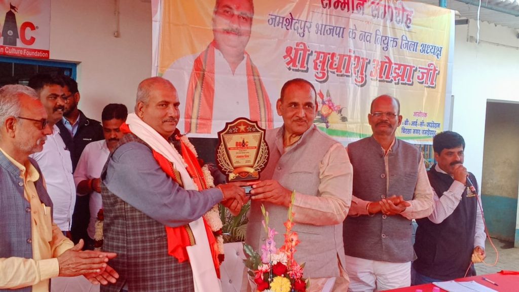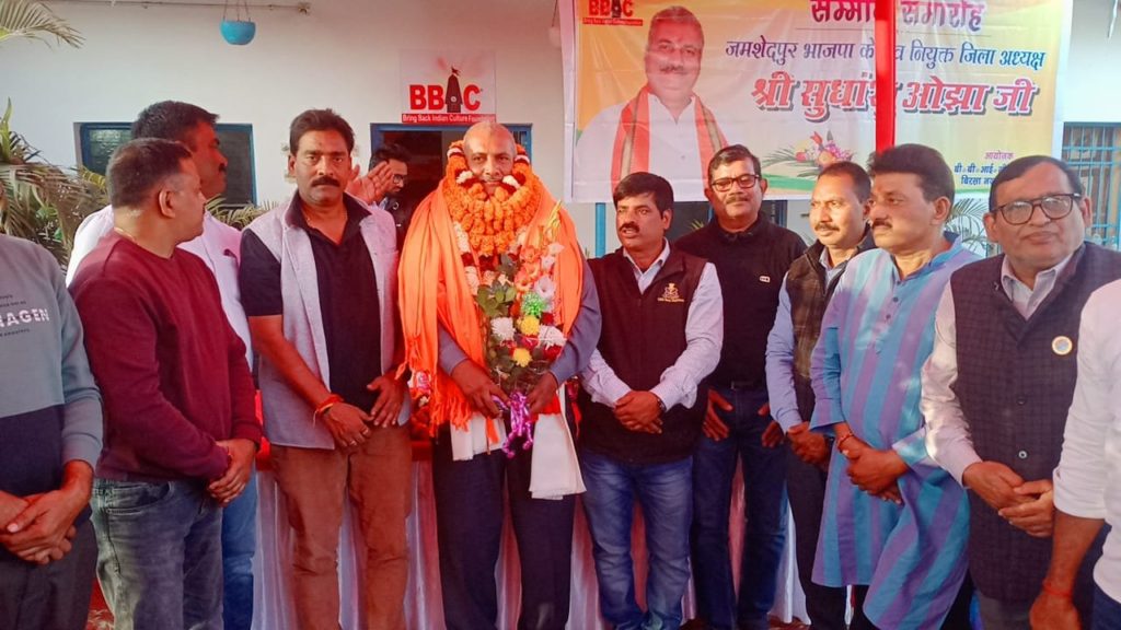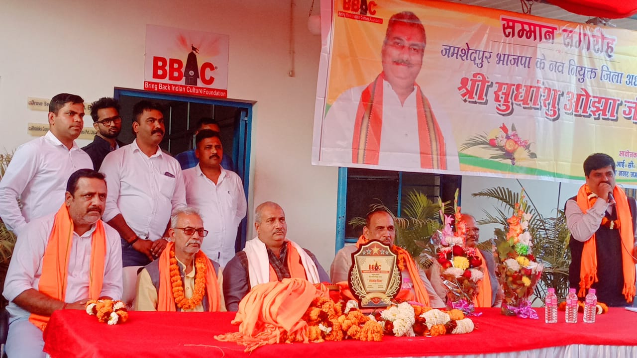 जमशेदपुर : ब्रिंग बैक इंडियन कल्चर फाउंडेशन जो भारत के पुराने सभ्यता को संरक्षित करने और 100 वर्षो से पुराने मंदिरों के जीवनोधार और संरक्षण को लेकर देशभर में काम करती है उसके द्वारा आज बिरसानगर के स्थित संगठन के स्थानीय कार्यालय में भाजपा जमशेदपुर महानगर के नवनियुक्त महानगर जिला अध्यक्ष सुधांशु ओझा का सम्मान समारोह आयोजित किया गया। कार्यक्रम में अतिथि के रूप में पूर्व सैनिक सेवा परिषद जमशेदपुर महानगर की टीम पूर्व भाजपा एवं युवा मोर्चा के मंडल अध्यक्ष सहित कई गणमान्य लोग मौजूद थे।