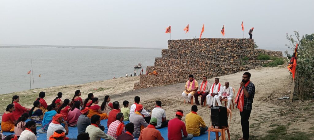 उधर इस कार्यक्रम को सफल बनाने के लिए प्रत्येक हिंदू परिवार से अन्न का संग्रह किया जाएगा जिससे महाप्रसाद तैयार होगा।वही आम सनातन परिवार के सहयोग से ही इतना बड़ा विराट कार्यक्रम आयोजित होगा। आगे उन्होंने बताया कि इस कार्यक्रम में प्रमुख रूप से अयोध्या स्थित हनुमानगढ़ी के प्रमुख राजू दास महाराज का आगमन होगा। इस कार्यक्रम हेतु निमंत्रण प्रत्येक हिंदू परिवार तक पहुंचाना भी हम लोगों का दायित्व है। उधर सूर्यदेव गंगा घाट पर सामूहिक रूप से हनुमान चालीसा का पाठ किया गया। इस कार्यक्रम में प्रमुख रूप से सूर्यदेव मंदिर सेवा समिति के संजय यादव लोकनाथ चौधरी, आरएसएस के जिला संघचालक डॉ. नितेश वर्मा, आरएसएस के नगर कार्यवाह प्रमोद कुमार रिंकू सहित सैकड़ो की संख्या में मातृ शक्ति और सामाजिक कार्यकर्ता उपस्थित थे। वही कार्यक्रम का संचालन जिला संपर्क प्रमुख डॉ. सुरेंद्रनाथ तिवारी ने किया।