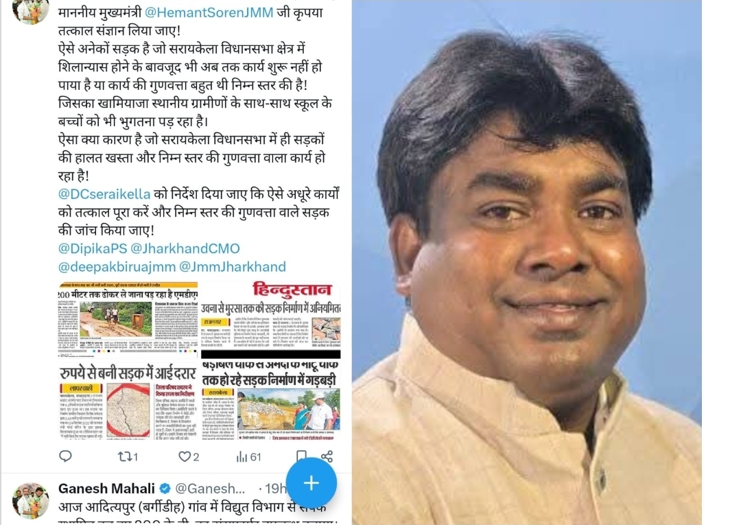 सरायकेला की जर्जर सड़कों पर झामुमो नेता गणेश महाली ने मुख्यमंत्री से की कार्रवाई की मांग, बच्चों और आमजन को हो रही भारी परेशानी July 22, 2025 No Comments