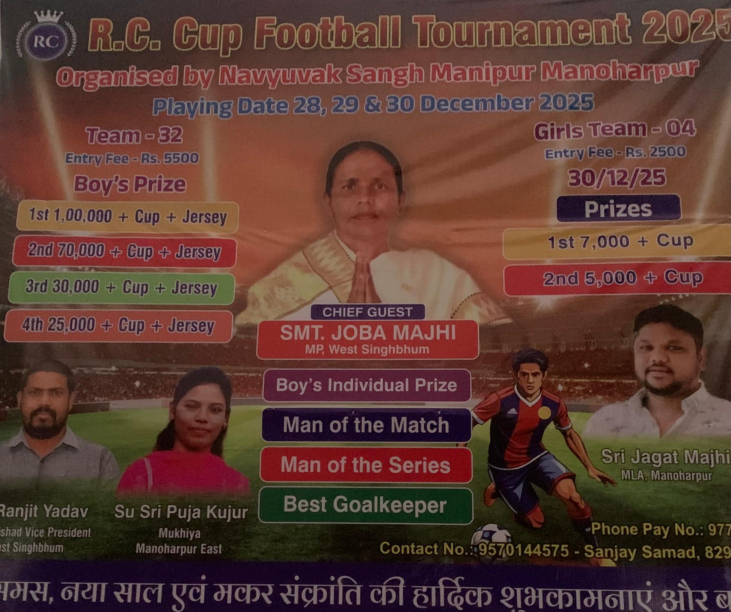 संघ मणिपुर (मनोहरपुर) द्वारा आर.सी. कप फुटबॉल टूर्नामेंट 2025 का भव्य आयोजन December 17, 2025 No Comments