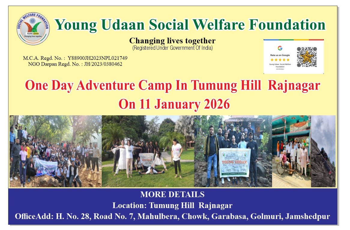 Tumung Hill Adventure Camp राजनगर के तुमुंग हिल में यंग उड़ान सोशल वेलफेयर फाउंडेशन का एकदिवसीय ग्रामीण दर्शन एवं एडवेंचर शिविर कल January 10, 2026 No Comments
