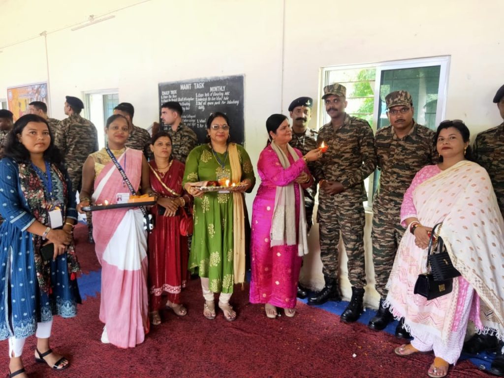 संस्था के सदस्यों ने सोनारी स्थित शैन्य शिविर में उपस्थित सभी सैनिक भाइयों और उच्च अधिकारियों को रक्षा सूत्र बांधकर उनकी रक्षा के लिए प्रार्थना की।इस अवसर पर श्रीमती तिवारी ने कहा कि जो सैनिक रात दिन हमारे देश के बॉर्डर पर अपने प्राणों की परवाह किए बिना देश के दुश्मनों से हमारी रक्षा करते है और भारतीय त्योहारों में प्रमुख रक्षा बंधन के दिन अपने परिवारसे दूर होते है ऐसे में हम बहनें उनकी कलाई पर रक्षा सूत्र बांधकर उनकी रक्षा की कामना करते है। हर्षोल्लास पूर्वक इस माहौल में सैनिक भाइयों ने वहां मौजूद बहनों को उपहार देकर सम्मान पूर्वक विदा किया। इस पुनीत और हर्षित बेला में संस्था की ओर से ऊषा सिंह,रानी कालुंडिया, बैजयंती बारी,सुमित्रा पांडा और अनीता देवी,रीमा जैसवाल सहभागी रही।