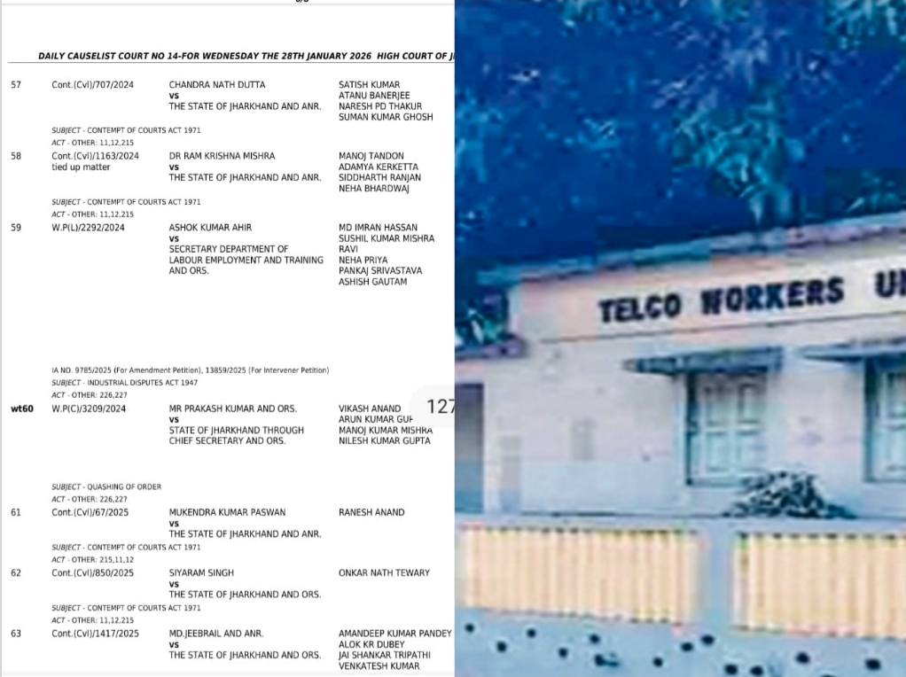 Telco Workers Unio टेल्को वर्कर्स यूनियन की रिट याचिका पर हाईकोर्ट में कल सुनवाई, मजदूरों के वेतन व ग्रेड का मामला January 27, 2026 No Comments
