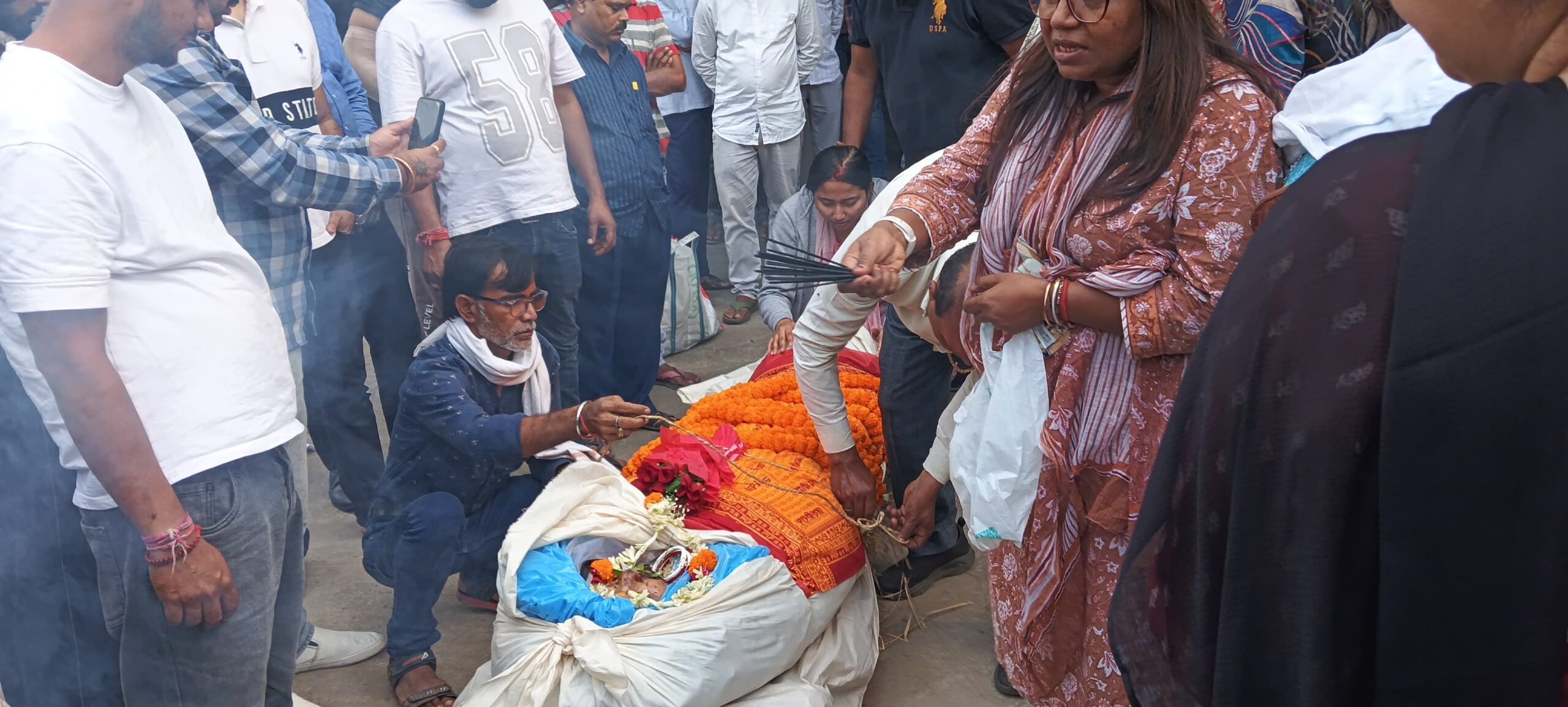 इससे पूर्व एमजीएम मेडिकल कॉलेज अस्पताल में अभिषेक हाजरा के शव का पोस्टमार्टम किया गया। पोस्टमार्टम के बाद जब पार्थिव शरीर आदित्यपुर स्थित उनके आवास पहुंचा, तो परिजनों और परिचितों में कोहराम मच गया। घर पहुंचते ही माहौल गमगीन हो गया और परिवार के सदस्य बेसुध होकर रो पड़े।