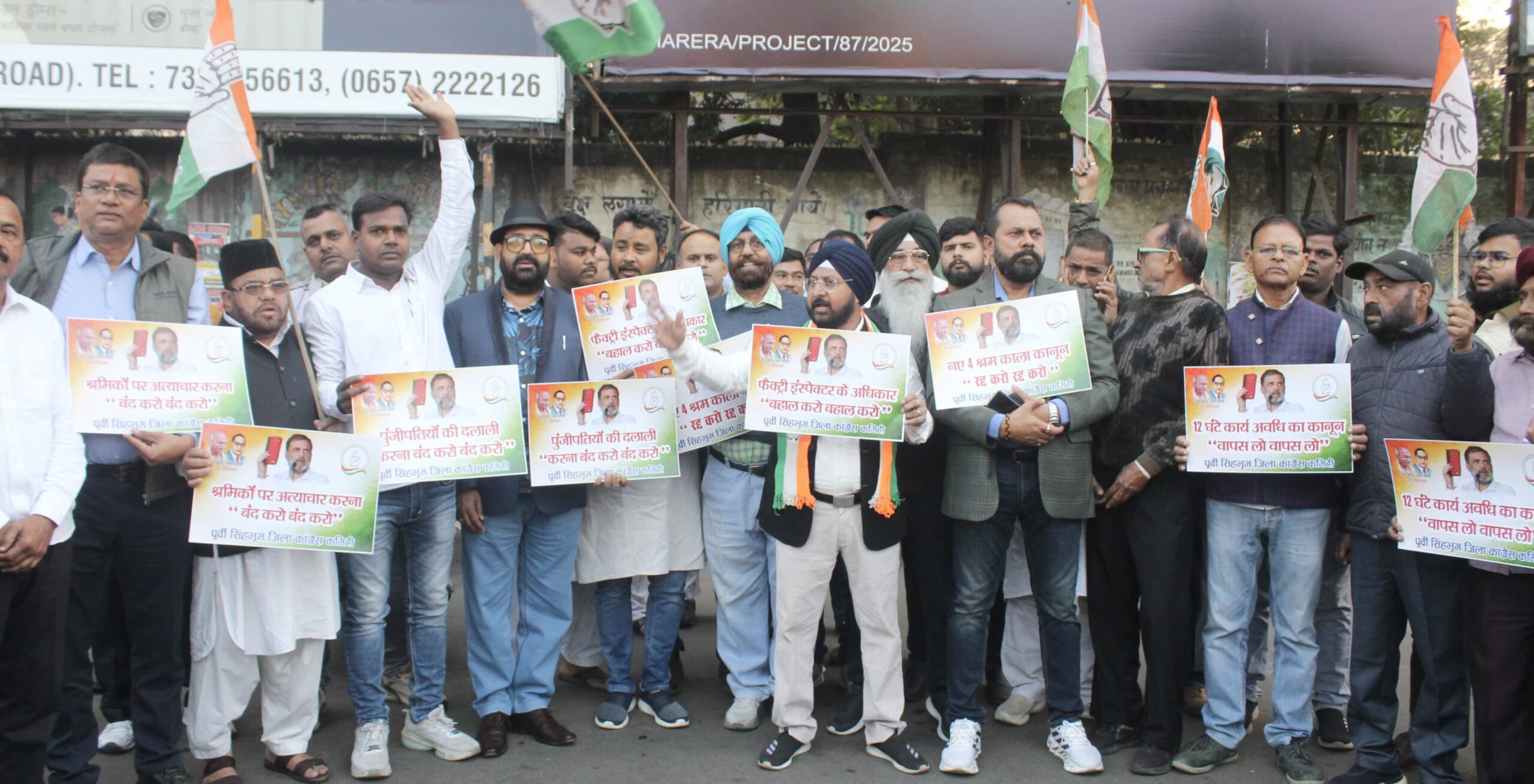 Jamshedpur:भाजपा सरकार द्वारा लागू किए गए नए श्रम कानूनों को “काला कानून” बताते हुए पूर्वी सिंहभूम जिला कांग्रेस कमिटी ने शनिवार को जमशेदपुर में जोरदार विरोध प्रदर्शन किया। जिला कांग्रेस के तत्वावधान में आयोजित इस कार्यक्रम में नरेंद्र मोदी एवं श्रम मंत्री मनसुख मांडविया का पुतला दहन किया गया। प्रदर्शन के दौरान श्रमिक अधिकारों के हनन के खिलाफ नारेबाजी गूँजती रही।