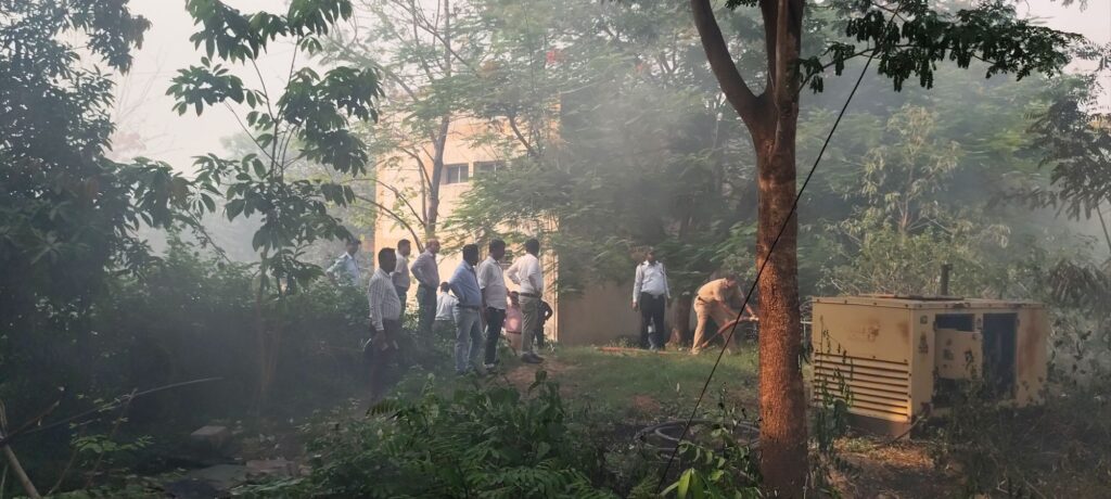 भोजनावकाश के बाद जैसे ही बैठक का दूसरा सत्र शुरू होने वाला था, तभी परीक्षा विभाग के पीछे लगे बिजली के ट्रांसफार्मर में अचानक आग लग गई। आग लगते ही परिसर में अफरा-तफरी का माहौल बन गया।