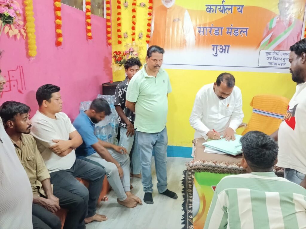 इस दौरान भाजपा सारंडा मंडल के कई पदाधिकारी और स्थानीय कार्यकर्ता मौजूद रहे। वहीं, क्षेत्र के लोगों ने भी रोजगार और विकास को लेकर ठोस कदम उठाने की मांग की।