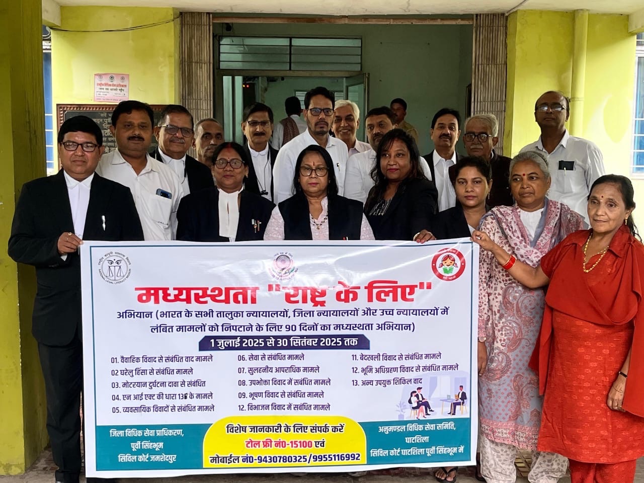 बैठक में के. के. सिन्हा, बी. कामेश्वरी, बिमल पांडेय, राजेश दास, प्रीति मुर्मू, सोमा दास, कृष्णा जी प्रसाद, मौसमी चौधरी समेत जिले के अन्य मध्यस्थ अधिवक्ता उपस्थित रहे।इस अवसर पर सभी अधिवक्ताओं ने अभियान को सफल बनाने हेतु अपने पूर्ण सहयोग का आश्वासन दिया। यह अभियान न केवल विवाद समाधान की प्रक्रिया को गति देगा, बल्कि न्यायिक प्रणाली पर पड़ रहे बोझ को भी कम करने में सहायक सिद्ध होगा।