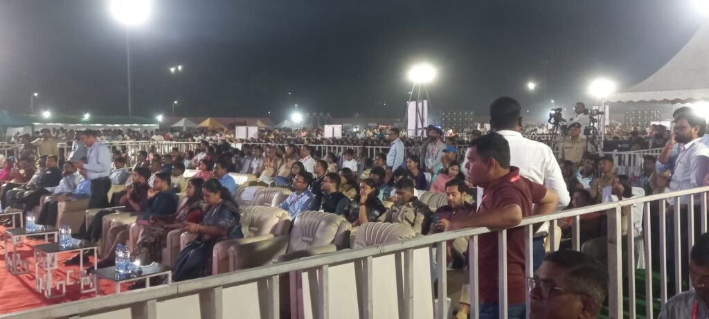 Adityapur : स्थानीय बिरसा मुंडा स्टेडियम में आयोजित तीन दिवसीय राजकीय छऊ नृत्य महोत्सव के दूसरे दिन रविवार को सांस्कृतिक वैभव अपने चरम पर दिखा। कार्यक्रम का शुभारंभ मंच पूजन एवं पारंपरिक ‘मंगलाचरण के यात्रा घट’ के साथ विधिवत रूप से किया गया।