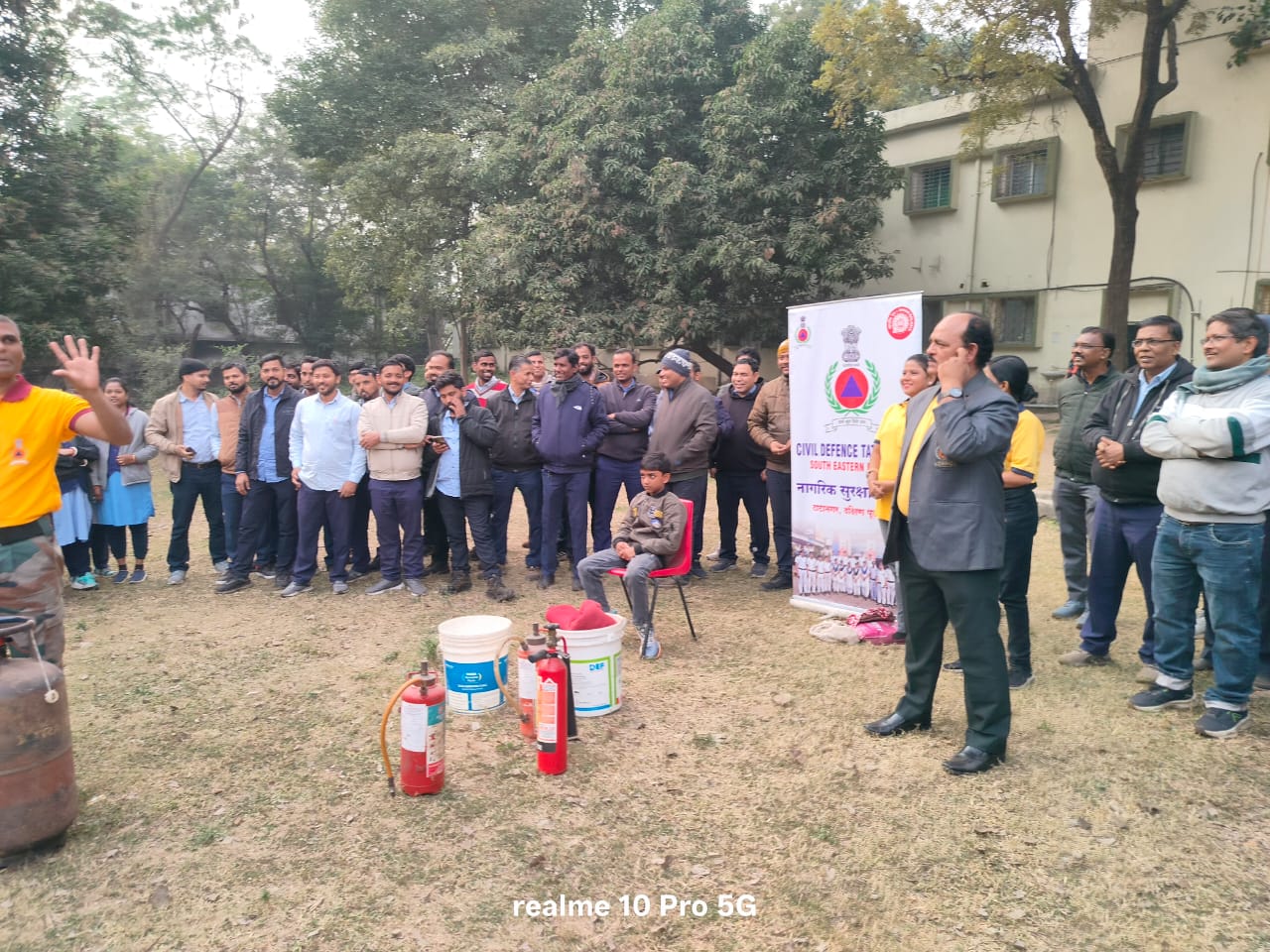 सिविल डिफेंस इंस्पेक्टर संतोष कुमार ने बताया कि शॉर्ट सर्किट या किसी अन्य कारण से क्लासरूम में आग लगने पर भगदड़ की स्थिति में घायल व्यक्तियों की संख्या बढ़ जाती है। उन्होंने कहा कि चार तरह के घायल व्यक्ति—अति आवश्यक चिकित्सा, आवश्यक चिकित्सा, मामूली चोटिल और मृत—ऐसी स्थिति में प्रशिक्षित रेस्क्यू कर्मियों की कार्यकुशलता ही जीवन बचा सकती है।
